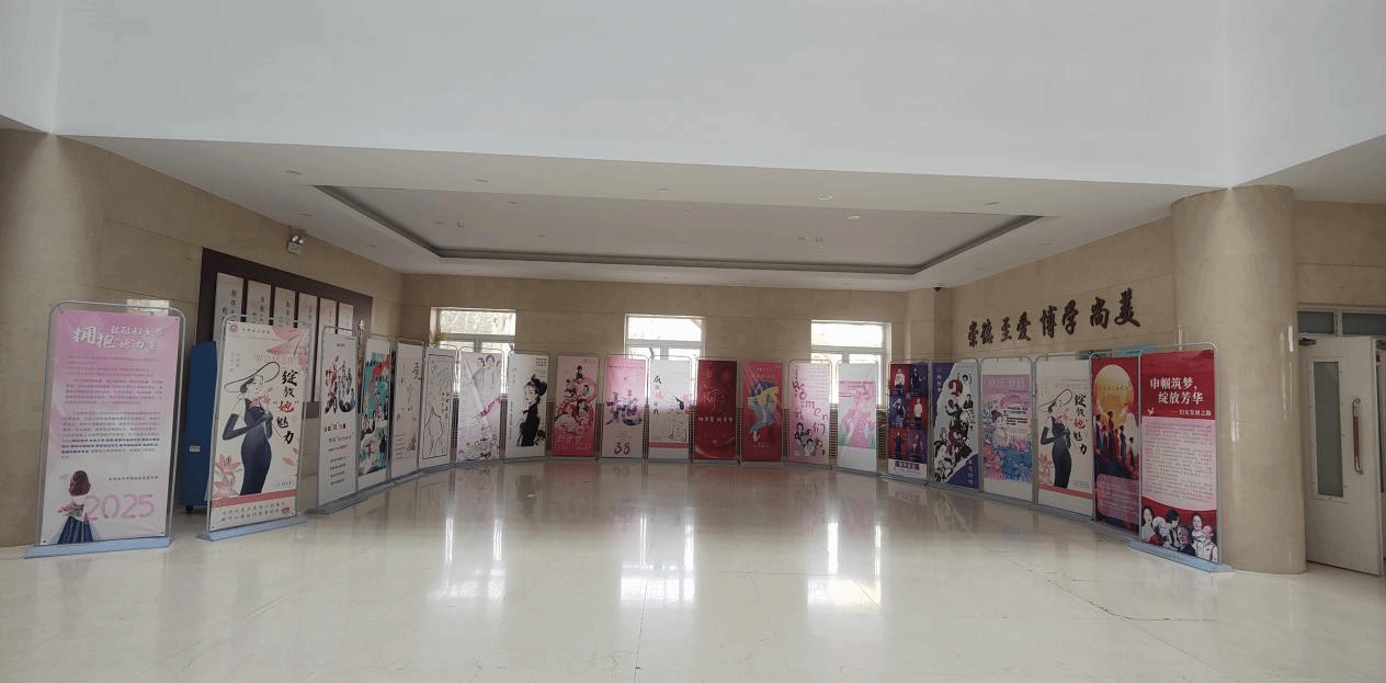 为纪念国际劳动妇女节,庆祝我国妇女事业的发展和成就,迎接全球妇女峰会和北京世妇会+30纪念,妇女发展学院依托《女性学导论》课程平台,鼓励学生围绕妇女节和妇女发展进行海报创作,于主楼大厅展出,并选送部分作品选参加大屯街道2025年纪念“三八”国际劳动妇女节活动现场。
