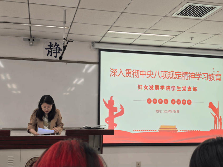 本次会议使全体党员对中央八项规定精神有了更为深刻的认识。妇女发展学院学生党支部将持续深入推进中央八项规定精神的学习教育,确保作风建设取得实效,为党支部的发展提供坚实的纪律保障。