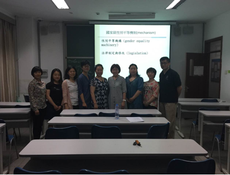 通过此次研讨,顾教授向研讨班成员传递了台湾及国际妇女运动相关信息,深入探讨了性别意识主流化等议题,激发了学生的学习兴趣,开拓了研讨班成员的视野。