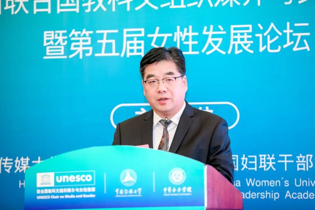 中国传媒大学副校长刘守训在致辞中指出,本次论坛聚焦国际传播新形态和妇女发展,立意高远,视野宏阔。联合国教科文组织媒介与女性教席于2005年在中国传媒大学设立,2018年,媒介与女性教席由中国传媒大学和中华女子学院共同建设,汇聚两校的优势资源,为教席发展提供更好助力。在中国式现代化建设的时代新征程中,妇女群体发挥了重要的巾帼力量,妇女对国际传播的重要价值有三大特点,拓展传播话语、汇聚传播力量和构建传播体系。在今天的数字社会,做好妇女领域的国际传播,推动女性群体的可持续发展,是时代的责任和使命。