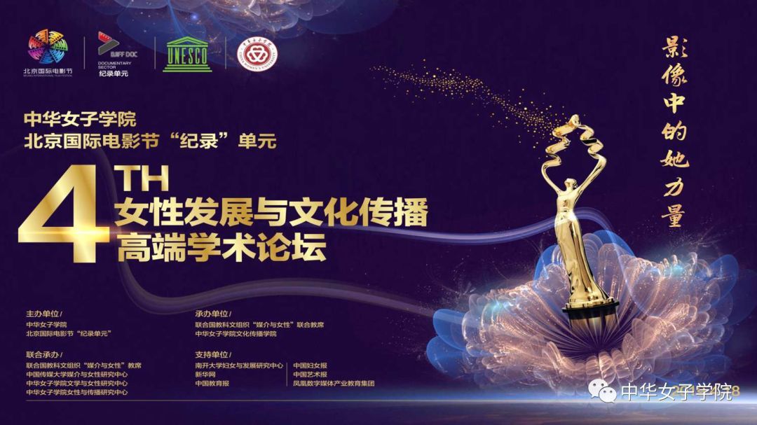 2019年4月18日下午,北京国际电影节“纪录单元”系列学术活动之一“影像中的她力量”高端学术论坛在中华女子学院举行。此次论坛由中华女子学院与2019北京国际电影节纪录单元联合举办,联合国教科文组织“媒介与女性”联合教席、中华女子学院文化传播学院承办。
