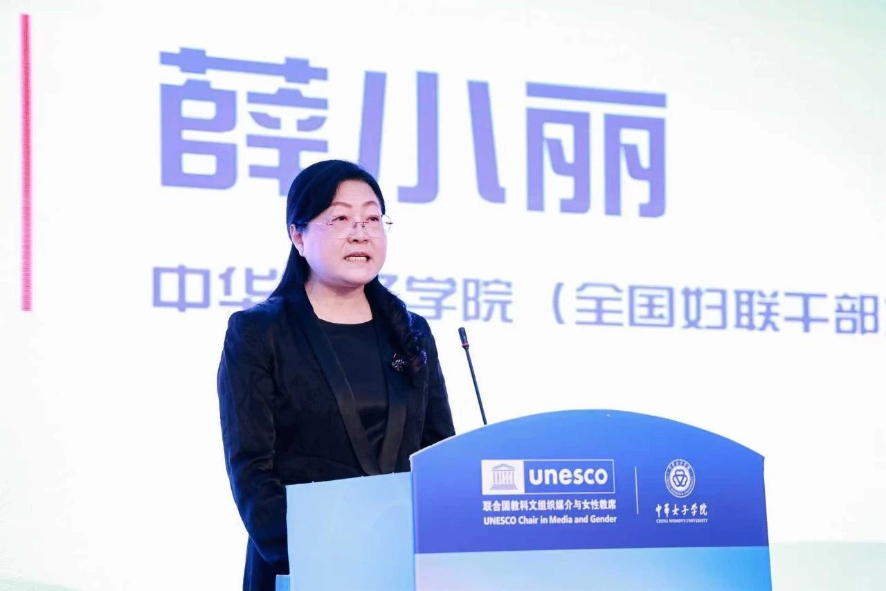 中华女子学院(全国妇联干部培训学院)副院长薛小丽在致辞中对各位嘉宾的出席以及社会各界对中华女子学院的支持关心表示感谢。她指出中华女子学院是联合国教科文组织媒介与女性联合教席的重要执行单位,一直致力于妇女和信息传播领域的研究与发展。今年是中华女子学院建校75周年,作为全国妇联直属院校,未来将继续发挥教席和全球妇女发展合作交流培训基地的重要作用,高质量建设中国特色女子大学,为促进妇女成长成才、全面发展作出更大贡献。