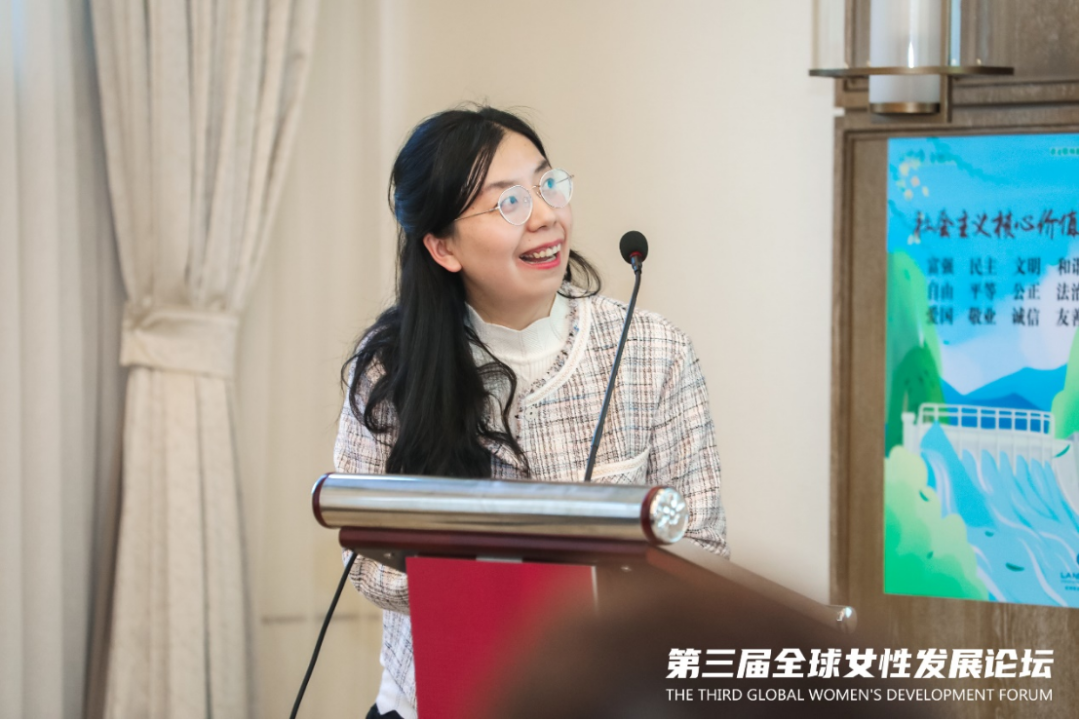 中国传媒大学国家传播创新研究中心媒介与女性研究中心助理研究员唐觐英分析了生态文明转型、乡村振兴、城乡融合的重要性,并指出以最广大工农阶级为中心、构建平衡互哺的城乡关系是数字化时代妇女发展的根本方向。