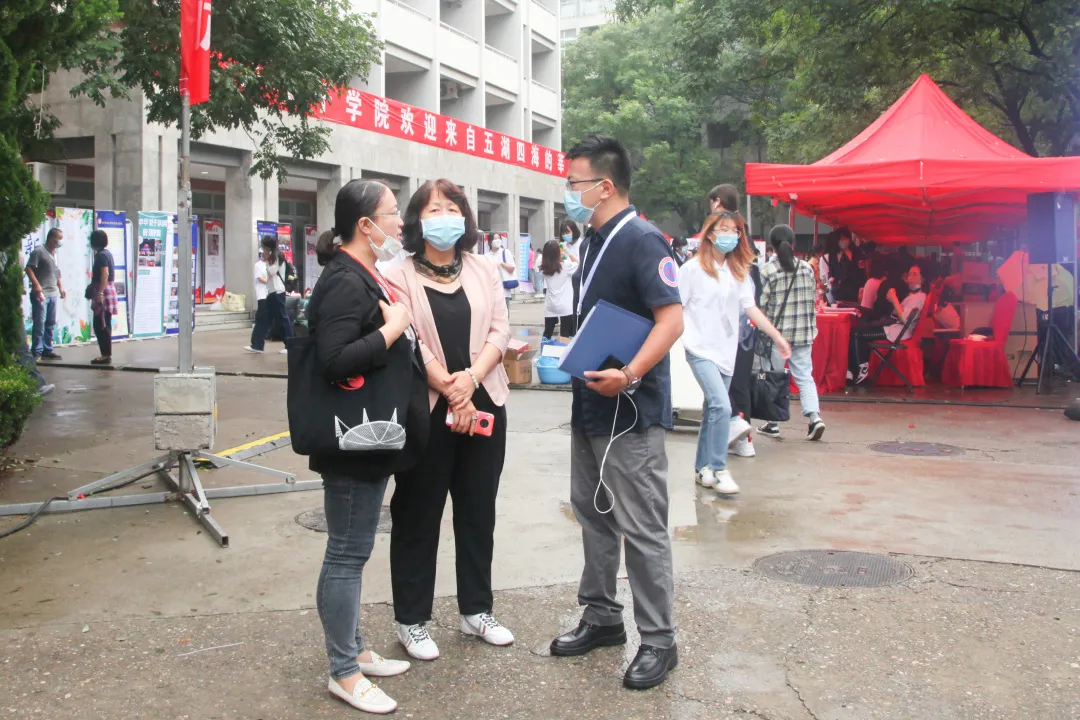 一大早,学校党委书记李明舜等校领导就来到迎新现场,亲切看望前来报到的新生及家长,慰问参加迎新工作的师生员工,在绿色通道处为家庭经济困难学生发放爱心包。