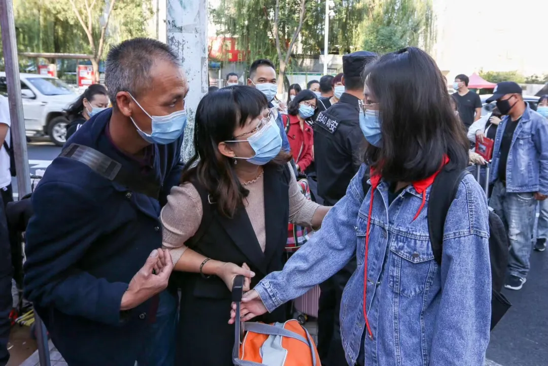 看到家长们聚集在大门口向报到处热切张望,李明舜走到他们面前亲切交谈:“疫情原因,各位家长只能送到这里。孩子交给我们,请你们放心!”