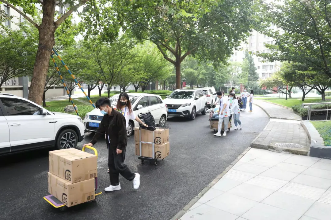 报到当天,学校安排在北校区临近地铁站接驳报到本科新生,行李经初次消杀后,新生凭借录取通知书、健康码登车。新生入校前核验入校码、健康宝绿码、通信大数据行程卡绿码、核酸检测报告,并进行体温测量,行李再次消杀后方可入校。