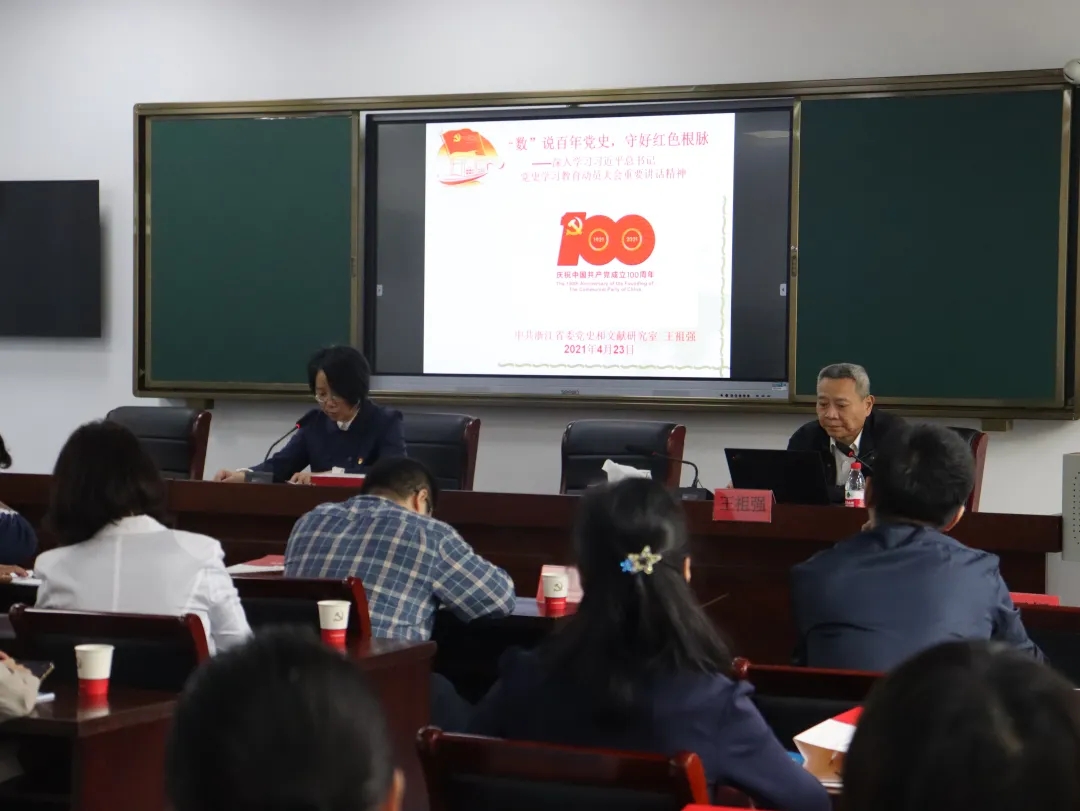 4月23日上午,浙江省委党校王祖强教授讲授的《“数”说百年党史 守好红色根脉》,历数了百年党史中的“一颗初心,两大任务,三个起来,四个时期,五大谱系,六面旗帜,七大成就,八部大作,九个特征,十大印记”,简洁清晰地展现出了党在这一百年中的艰苦卓绝和荣耀辉煌。