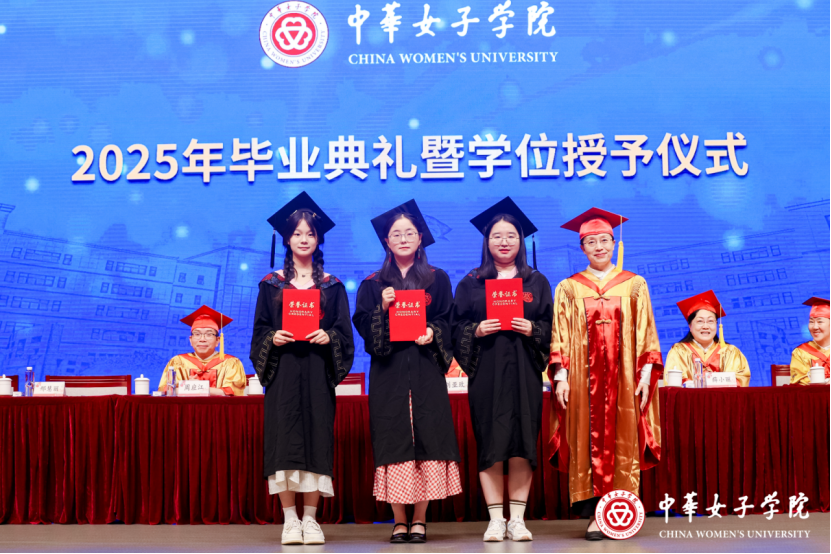 盛夏蝉鸣起,骊歌再奏响。6月27日下午,中华女子学院2025年毕业典礼暨学位授予仪式在学校礼堂隆重举行。1136名2025届毕业生和500多名家长齐聚一堂,共享难忘时刻。学校学位评定委员会委员、各职能部门负责人、各二级学院书记、辅导员、班主任及相关教师共同见证毕业生的成长。党委书记刘亚玫、院长刘利群、党委副书记赵浩、副院长薛小丽、周应江、韩燕、李莹,党委常委张霞、叶水平出席典礼。典礼由党委副书记兼纪委书记邢慧丽主持。