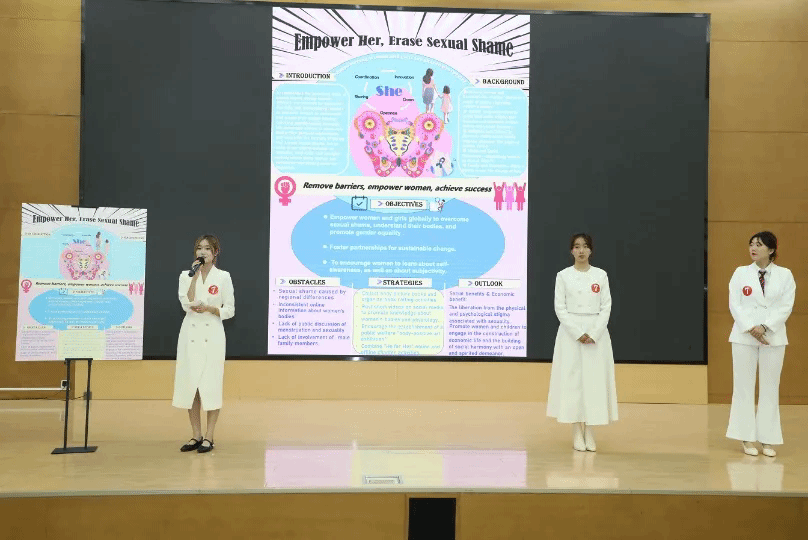 2024年11月2日,第三届“外教社杯”北京高校青年人才国际胜任力大赛决赛在中国人民大学举办。我校代表队从容、自信参赛,斩获二等奖。我校师生代表将目光聚焦于“女性赋能”这一议题,在孙彦彬、王丽娟老师的悉心指导下,学生广泛收集资料、精心撰写提案、用心制作海报,成功获得了决赛资格。由 23 级社会学专业杨炎祺、23 级女性学专业毛翎和格格陶莉所组成的团队,在决赛的舞台上作为女院之声,发出了为全球女性赋能的时代强音。三位同学流畅展示提案、沉着回答评委和其他参赛队伍的提问,最终喜获二等奖。孙彦彬、王丽娟两位老师获得优秀指导教师奖,我校荣获了优秀组织奖,收获满满。获奖信息还被澎湃新闻网转发。链接如下